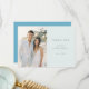 These wedding thank you cards feature a modern and minimalistic design with a balanced layout, showcasing a soft pastel color palette. The left side includes a placeholder for a photograph, while the right side offers a calming pale blue-green background with centered typography. The clean lines and smooth gradients create an elegant aesthetic, perfect for expressing gratitude to guests. With customizable text elements, these cards are ideal for personalizing your post-wedding thank you notes, capturing the warmth and celebration of your special day.