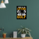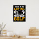 Denna djärva och självklara illustration visar ett stort golfområde boll med två korsade golfhuvuden bakom den, allt i vitt med ett plågat struktur. En banderoll med tre stjärnor på vardera sidan flödar runt golfens boll mitten och anger "IN" i vitt. Ovanför den centrala bilden är "DET FINNS NEJ" vitt och "GRÅTANDE" i en vibrerande orange. Under golf boll och klubbar visas "GOLF" tydligt i samma nödlidande orange. Den övergripande utformningen förmedlar ett starkt, nonsens budskap om idrotten.