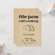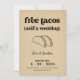 Gratis tacos (och ett bröllop). Ett roligt spara datum-kort som sätter strålkastarljuset på... tacos! Illustrationen är handritad.