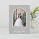 Ett modernt grått-anpassningsbar-arch-kort från bröllop som du kan skicka till familj och vänner med stort textutrymme på motsatt sida för att du ska kunna skriva ditt eget ord av tacksamhet.