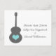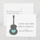 Hip och snyggt Guitar Heart Spara datumkortet med ett grått- akustiskt gitarr och ett sött turkospinnande hjärta. Det här moderna och unika sparandet av datum-vykortet är perfekt för att meddela datum för din kommande rockare-chic, musiktemat bröllop! Anpassa med informationen om bröllop. Klicka på knappen "Anpassa" för att hitta ytterligare anpassningsalternativ.