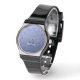 Grått-blå geometrisk maska mönster Monogram Watch. Anpassa med din anpassningsbar till början och namn. Coolans övertoningskaraktär, mönster utformning av geometriska nät.