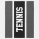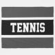 Den här roligtens sportdesign har ett klassiskt stort, fetstilt, stort brev i ett markerat svart rand med vitt streck på en mörk grått-bakgrund med "TENNIS" som stavas ut framtill och från mitten. Gör det till din egen: färg och texten i den här designen kan vara personlig.