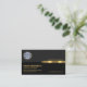 En logotyp i guld-jordgloben som du kan använda finns i det övre lämnat hörnet, följt av en slogantext precis ovanför rand. Mot det svarta lagrar ljuger du ditt ansedda namn, din befattning och dina kontaktuppgifter. Affärs-URL:en går i motsatt riktning.