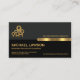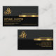 På andra sidan används samma designtema med logotypen guld och ditt prestigefyllda namn högst upp. I den svarta kolumnen under finns kontaktuppgifter och en sloganbeskrivning. Alla bokstäver för det här kortet är i Faux guld.