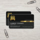En grått- och svart färgad utformning som accentueras av en faux guld rand nära mitten. Här ljuger du ditt företag namn med en guld-logotyp i halvlastbil som du kan använda i motsatt riktning. Under den här logotypen i guld ljuger du din prestigefyllda namn, befattning och kontaktuppgifter. Det finns en slogan för att marknadsföra dina tjänster i det nedre hörnet av högerna. På andra sidan används samma designtema. Den övre lagrar har guld logotyp och namn. Den svarta kolumnen under har kontaktuppgifter och slogan. Detta kort skulle vara underbart för lastbil förare, försörjningskedja och logistikteman.