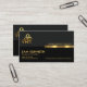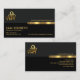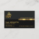 En enkel grått- och svart färgad utformning som framhävs av en faux guld rand nära kortets mittpunkt. På toppen av grått lagrar har du en logotyp för guld-personal på den lämnat väggen, och affärsföretaget namn åker på fliken faux guld på kortets höger. Din prestigefyllda namn, befattning och kontaktuppgifter finns i den svarta lagrarna under. En slogan för att annonsera dina tjänster finns i närheten av den nedre högerna.
