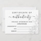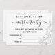 Chicens minimalistiska äkthetsintyg i svartvitt med blommor och grönska från hand plockade grått till vilket du kan lägga till ditt namn eller ditt företag namn. Skrivs ut på ett 5-tums x 7-tumskort.