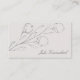Elegant vågrät-affärskort med en enkel hand plockade-pennskiss av gren med löv och blommor till lämnat och ditt namn i skript till högerna, över neutralt-bakgrund i grått. Bakgrunden kan ändras till valfri färg. Baksidan har ditt namn och din titel högst upp och din kontaktinformation nedan.