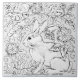 Grått Bunny Rabbit Bird Blommigt Teckning Artistic Kakelplatta