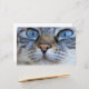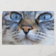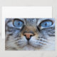 Den här designen har en snygg bild av en katt som tittar på kameran med bestämdhet. Det har en vacker grått jackat av päls.