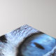 Den här designen har en snygg bild av en katt som tittar på kameran med bestämdhet. Det har en vacker grått jackat av päls.