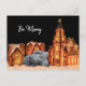 Grått, eller grått, kattunge har blivit Merry och översvämmats i visningen God Jul Village, söta kattälskare helgdag vycard