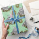 Grått Cat Mönster med Grönt Ornament Presentpapper