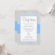 Modern blåa och grått Baptism-inbjudningar. Med grått och vit chevron mönster och blå kor.