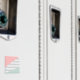 Snyggt mint-grönt och koralldiagonalhörn med grått-kluster