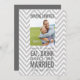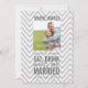 Grått och vit Chevron Mönster Modern Fotobröllopsinbjudning med mat, dryck och gift tema. Elke Clarke©. Endast exempelbild. Ersätt med ditt eget. Lägg till din bröllopsinbjudningstext på kortets baksida. Använda meddelandena eller välj "anpassa" om du vill ha fler redigeringsalternativ.
