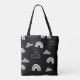 Grått Clouds and Rainbows on Black Tote Bag Tygkasse