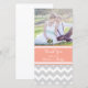 Bröllop tackar dig för att du har fotokort i modernt och chic grått, persiko orange rosa och vit med retro chevron zigzags rand mönster. Ett perfekt sätt att tacka vänner och familj för bröllopsgåvor och dina bröllop-foton. Finns i matchande porto och många andra produkter för bröllop.