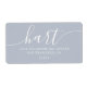 Snyggt grått-dagars returadressetikett med en modern manusfamilj namn med klassisk serif-adress-text. Den mjuka grått-blå bakgrunden tillför en subtil och elegant beröring till bröllopsinbjudningar, babydusch, helgdagskort eller daglig korrespondens. En mångsidig och tidlös etikettutformning för personlig använda eller familjeåtergivning.