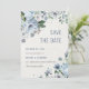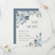 Vinterbröllopet i elegant sparar datumkortet med elegant grått och isig, blått vattenfärgsblomma bouquet frostigt kröd grönery. Kontakta mig om du behöver hjälp med anpassning eller om du behöver någon annan produkt med den här designen.