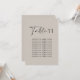 Budgetskylt för svartvit och grått elegant, modernt bröllop-bordsnummer-platshållarskylt.