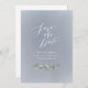 Modern kalligrafi i chicen sparar datumet med vattenfärgen grönt löv på färg, redigerbar dammig grått bakgrund, enkel bakgrund och elegant, underbar för rustiska bröllop, vår bröllop och sommarbröllop. Visa alla matchande delar i samlingen