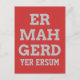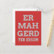 Dorky och roligt-typografi-vykort med ett ord från Ermahgerds populära minne. Ermahgerd är ett mycket okänsligt och lättvindigt sätt att säga "Åh Gud!" Anpassa med egen text och bakgrund färg. Använda en översättare som den här [http://ermahgerd.jmillerdesign.com/#!/translate] för att göra personligen ännu mer fånig!