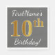 Grått, Faux Guld 10:e födelsedagen + eget namn Pappersservett