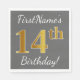 Den här enkla pappra napkin-designen innehåller ett meddelande som "FirstName's 14th Birthday!", där "14th" har ett faux/imitation guld-liknande utseende på en grått (grått) färgad-bakgrund. Namn kan vara personlig. Den skulle kunna användas i en födelsedagsfest till någon som firar sin fjortondagarsdag. [~Z0000190]