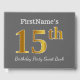 Gästsymbolen bok har ordnumret "15:e" med ett faux/imitation guld-liknande utseende. Den har också en personlig namn och en grått (grått) färgad bakgrund. Den skulle kunna användas i en födelsedagsfest till någon som firar sin femtonde födelsedag. [~Z0000193]