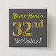 Grått, faux Guld 32:a födelsedagen, med eget namn Knapp