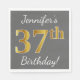 Den här enkla pappra napkin-designen innehåller ett meddelande som "Jennifers 37:e födelsedag!", där "37:e" har ett utseende som liknar faux/imitation guld på grått (grått) färgad. Namn kan anpassas. Den skulle kunna användas i en födelsedagsfest till någon som firar sin trettiosjunde födelsedag. [~Z0000190]