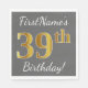 Grått, Faux Guld 39:e födelsedagen + eget namn Pappersservett