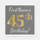Den här enkla pappra napkin-designen innehåller ett meddelande som "FirstName's 45 Birthday!", där "45:e" har ett faux/imitation guld-liknande utseende på en grått (grått) färgad-bakgrund. Namn kan vara personlig. Den skulle kunna användas i en födelsedagsfest till någon som firar sin fyrtiofemårsdag. [~Z0000190]