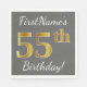 Den här enkla pappra napkin-designen innehåller ett meddelande som "FirstName's 55 Birthday!", där "55:e" har ett faux/imitation guld-liknande utseende på en grått (grått) färgad-bakgrund. Namn kan vara personlig. Den skulle kunna användas i en födelsedagsfest till någon som firar sin femtiofemårsdag. [~Z0000190]