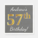 Den här enkla pappra napkin-designen innehåller ett meddelande som "Andrew's 57:e födelsedag!", där "57:e" har ett utseende som liknar faux/imitation guld på grått (grått) färgad. Namn kan anpassas. Den skulle kunna användas i en födelsedagsfest till någon som firar sin femtiosjunde födelsedag. [~Z0000190]