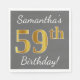 Den här enkla pappra napkin-designen innehåller ett meddelande som "Samantas 59:e födelsedag!", där "59:e" har ett utseende som påminner om faux/imitation guld på grått (grått) färgad. Namn kan anpassas. Den skulle kunna användas i en födelsedagsfest till någon som firar sin femtionionde födelsedag. [~Z0000190]