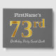 Gästsymbolen bok har ordnumret 73rd med ett utseende som liknar faux/imitation guld. Den har också en personlig namn och en grått (grått) färgad bakgrund. Den skulle kunna användas i en födelsedagsfest till någon som firar sin sjuttiotredje födelsedag. [~Z0000193]