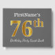 Gästsymbolen bok har ordnumret 76th med ett faux/imitation guld-liknande utseende. Den har också en personlig namn och en grått (grått) färgad bakgrund. Den skulle kunna användas i en födelsedagsfest till någon som firar sin sjuttiosjätte födelsedag. [~Z0000193]