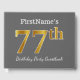 Gästsymbolen bok har ordnumret 77th med ett utseende som liknar faux/imitation guld. Den har också en personlig namn och en grått (grått) färgad bakgrund. Den skulle kunna användas i en födelsedagsfest till någon som firar sin sjuttiosjunde födelsedag. [~Z0000193]