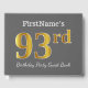 Gästsymbolen bok har ordnumret 93rd med ett utseende som liknar faux/imitation guld. Den har också en personlig namn och en grått (grått) färgad bakgrund. Den skulle kunna användas i en födelsedagsfest till någon som firar sin nittiotredje födelsedag. [~Z0000193]