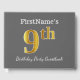 Gästsymbolen bok har ordnumret "9th" med ett utseende som liknar faux/imitation guld. Den har också en anpassad namn och en grått- (grått) färgad-bakgrund. Den skulle kunna användas i en födelsedagsfest till någon som firar sin nionde födelsedag. [~Z0000193]