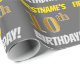 Den här pappra designen innehåller ett meddelande som "FIRSTNAME's 10:e BIRTHDAY!", där "10:e" har utseendet faux/imitation guld-liknande färg och med namn och "BIRTHDAY" i ett roligt, fet stil. Namn är anpassade och bakgrunden är färgad grått (grått). Att packa pappert som detta skulle kanske kunna användas när man fyller på födelsedagskalkyl som ges till någon i firande på deras tioårsdag. [~Z0000211]