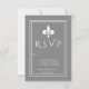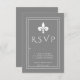 Elegant och enkelt Bröllop-responskort med en fleur de lis mot Grått bakgrund. Trendigets utformning är ett unikt val för ett modernt bröllop. Enkel att anpassa med din bröllop-information. Klicka på Anpassa om du vill söka efter fler anpassningsalternativ.