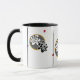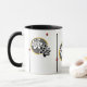 Denna samtidaa vänliga blommakaffemugg i elegantsvart, grått och vitsärdrag, precis som höger numrerar av geometriska brytningar i ljus gult och rött. En vänlig blommakaffemugg gör tillfällen speciella. Den original- designen av Anne sätta en klocka på.