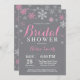Lantlig vinterinbjudningskort för möhippan. Rosa- och vitSnowflake. Inbjudan för julhelgdagmöhippa. Grå bakgrund. Behaga klickar "skräddarsy den" knäppas och använder vårt designverktyg för att ändra denna mall för mer ytterligare customization.