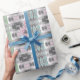 Färg rand kan bytas till vilket färg som helst på detta grått-mönstrade tillfällen-presentpaket.