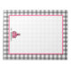 Ett anteckningsblock för lärare med grått gingham-bakgrund. Avsnittet i Sheer Center beskrivs i rosa. Anpassa med ditt namn under logotypen Rosa Schoolhouse i grund.