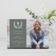Ett formellt men modernt studenten-fotomeddelande för alla typer av medicinska kvalifikationer. Med ett fullt-blekt foto med övertäckning av färg och aduceus-symbolen omgiven av en lagerkrans. Malltexten för student är helt och hållet anpassade, så teckensnittet storlekt, stil, färg och placering kan ändras. Baksidan har en heltäckande färgad och malltext för ett längre meddelande. Om du inte vill ta med någon text på baksidan raderar du den innan du beställer den. Om du vill ha ett foto på baksidan av kortet tar du bort både bakgrunden till färgaden och malltexten och överför ett eget foto. Utformningen är tillgänglig i andra färg och med design för specifika medicinska kvalifikationer (MD, RN, DO) i min butik.